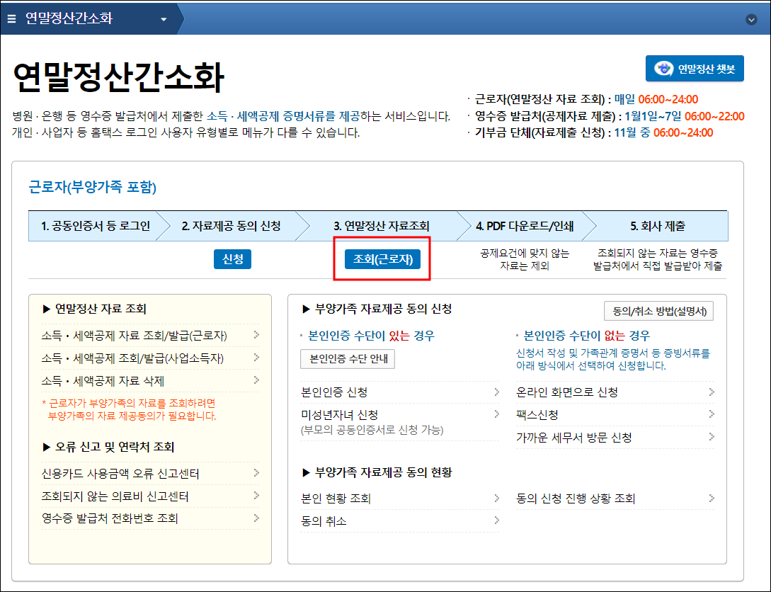 ▼ [소득 · 세액공제 자료 조회] 페이지가 나옵니다.