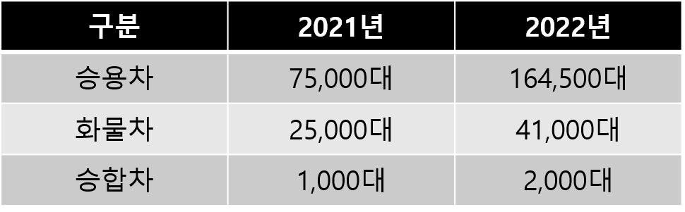 소형 화물차는 1,400만원, 대형 승합차는 7,000만원으로 책정되어 작년 전기차 보조금과 비교해 크게 줄어들었습니다.