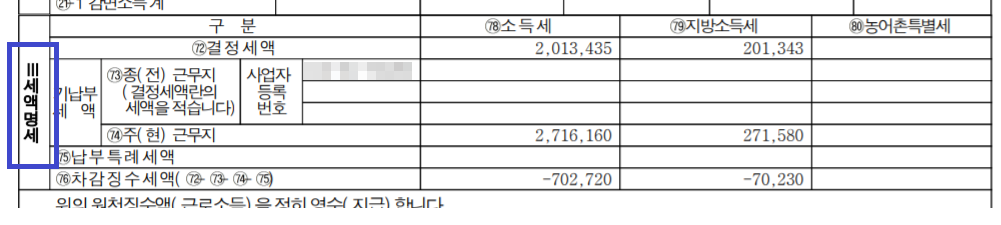 또한 감면소득도 확인 할 수 있습니다. 가장 대표적인 감면은 중소기업 취업자 소득세 감면이 있습니다.