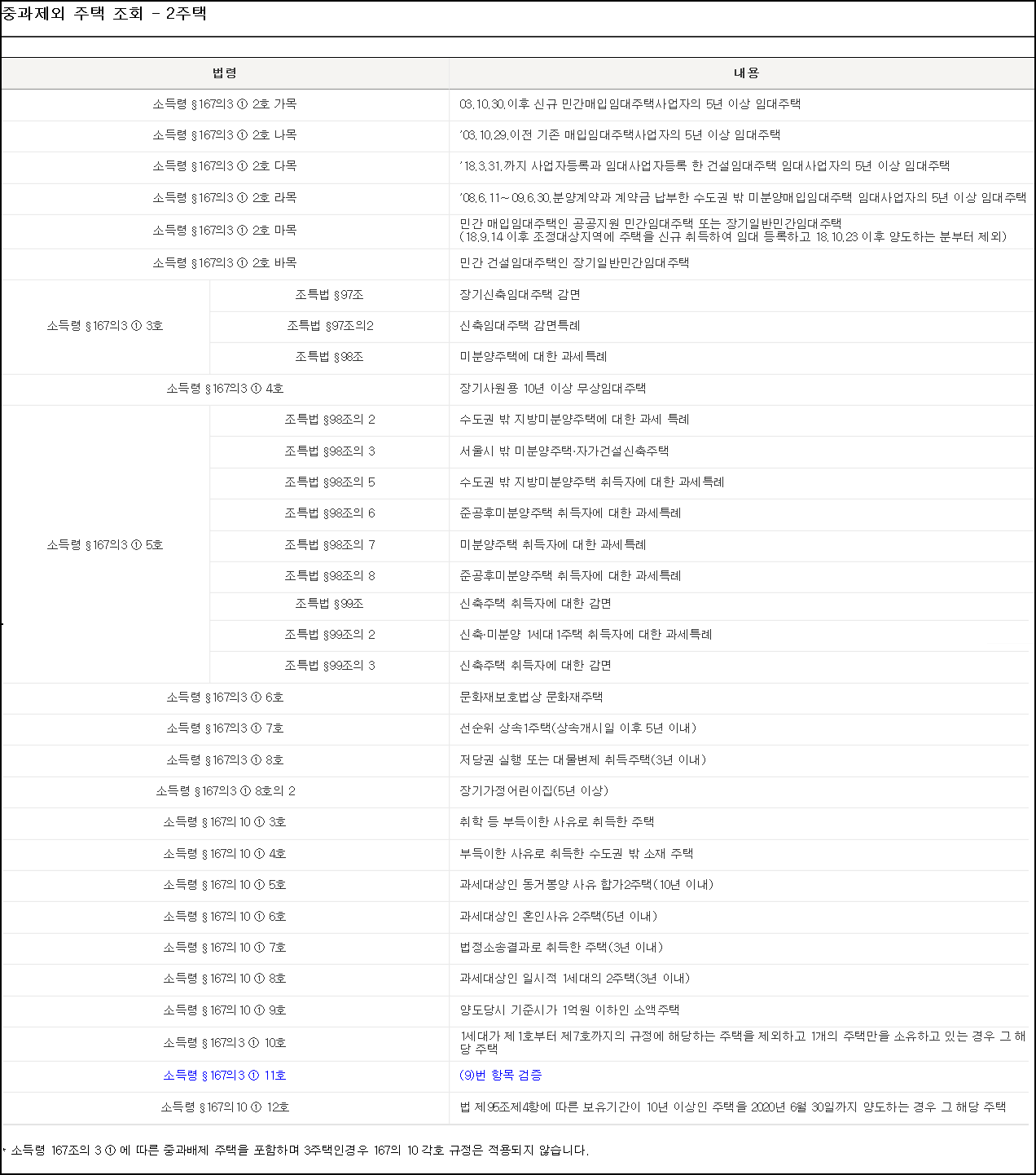 1세대 2주택 서울시 도봉구 소재 30평대 아파트 : 1995년 1월 매입, 취득 시부터 현재까지 거주. 서울시 송파구 소재 30평대 아파트 : 2016년 3월 매입, 거주한 적 없음. |
